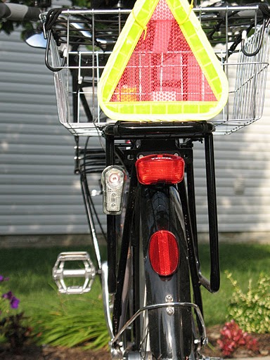 In the Bay Area, I often see cyclists wearing the safety vests used by construction workers. The reflective area is much larger, and these vests seem more durable. They’re also much less expensive — the vests marketed to the athletic market start at about $10 for the lighter, flimsy vests up to $30 for heavier, more durable vests. A mesh vest from an industrial supply company is only $3.15 (plus shipping). A vest with huge retro-reflective strips is only $10.