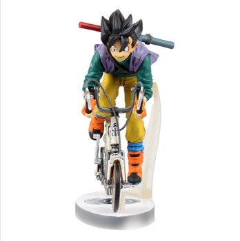 Goku, the other-worldly heroic protagonist of “Dragon Ball,” rides a miniature folding bicycle with drop bars in this action figure.
